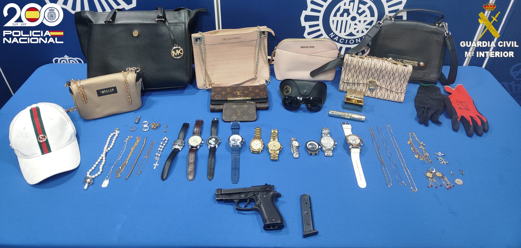 Se ha intervenido una pistola, joyas y bolsos de lujo, así como útiles para la comisión de los hechos.